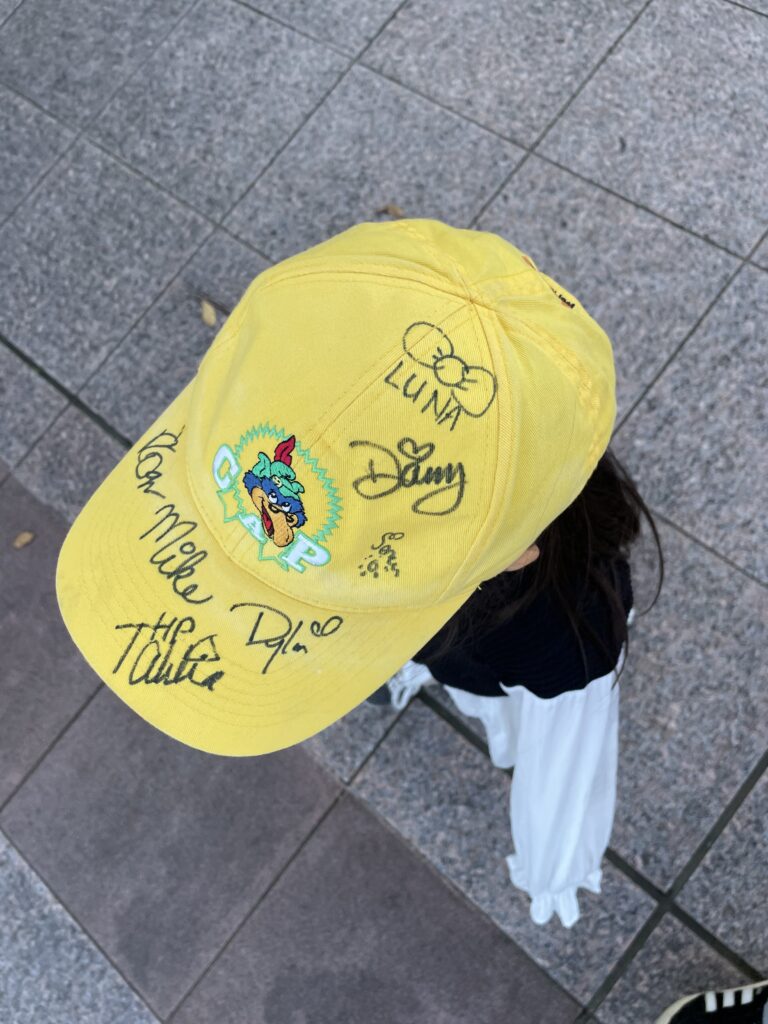 多くのお子さんがそれぞれ好きな色のキャップを被ってきます。このキャップにサインを貰うのが子供のモチベーションです。
