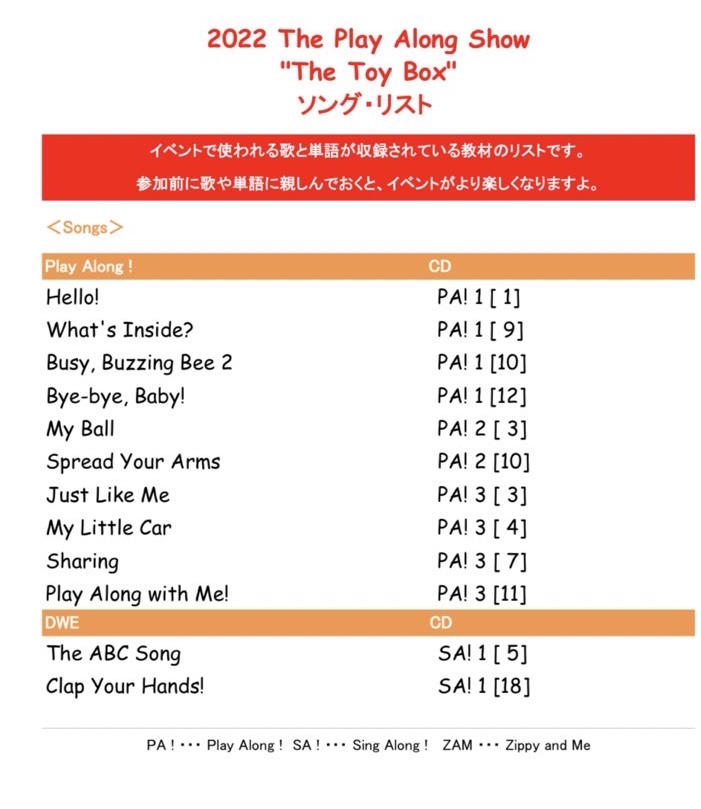 DWEはPlay Along やTACを中心とした教材を活用した自宅学習がメインの教材です。Play Along やTACの活用に慣れてくるとお子さんはどんどん発語が増えて、家庭内で英語を使用する機会が増えてくる時期だと思います。自宅で学んだ事を実践的にアウトプットできる機会がまさにWFCのイベント企画です。